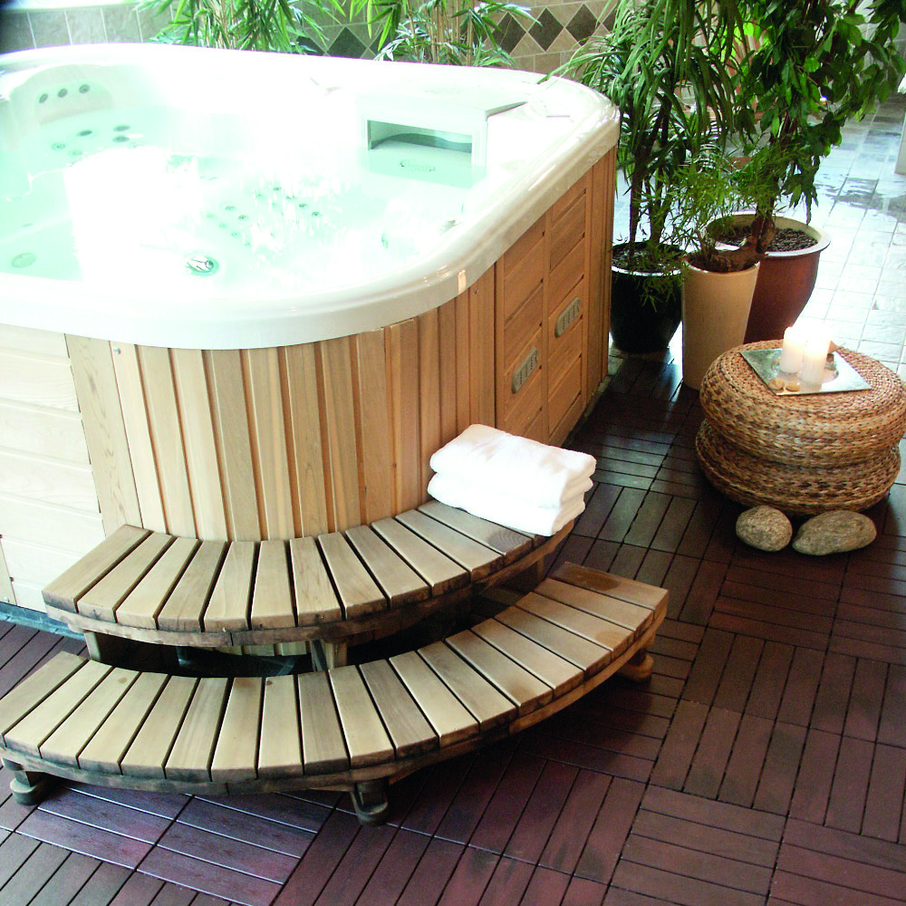 - Das Bodenfliesen-Stecksystem ist die optimale Lösung bei Böden, die Luftzirkulation brauchen und `atmen´ sollen. Durch kleine Einzelplatten passt das Stecksystem überall – einfache Installation, egal ob in Kellerräumen oder großdimensional als stilvoller Antirutschbelag für Sauna, Wellnessbereich, Schwimmbecken, Terrassen, Balkon o.ä.