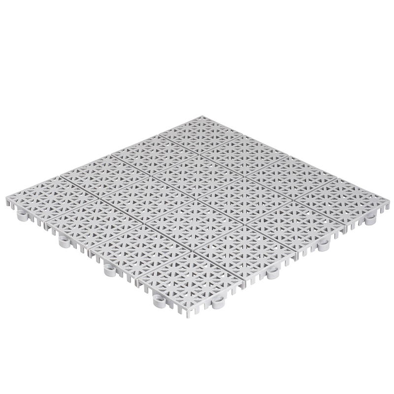 - Die Bodenplatten besitzen eine Drainagestruktur, welche Stauwasser und Rutschgefahr vorbeugt