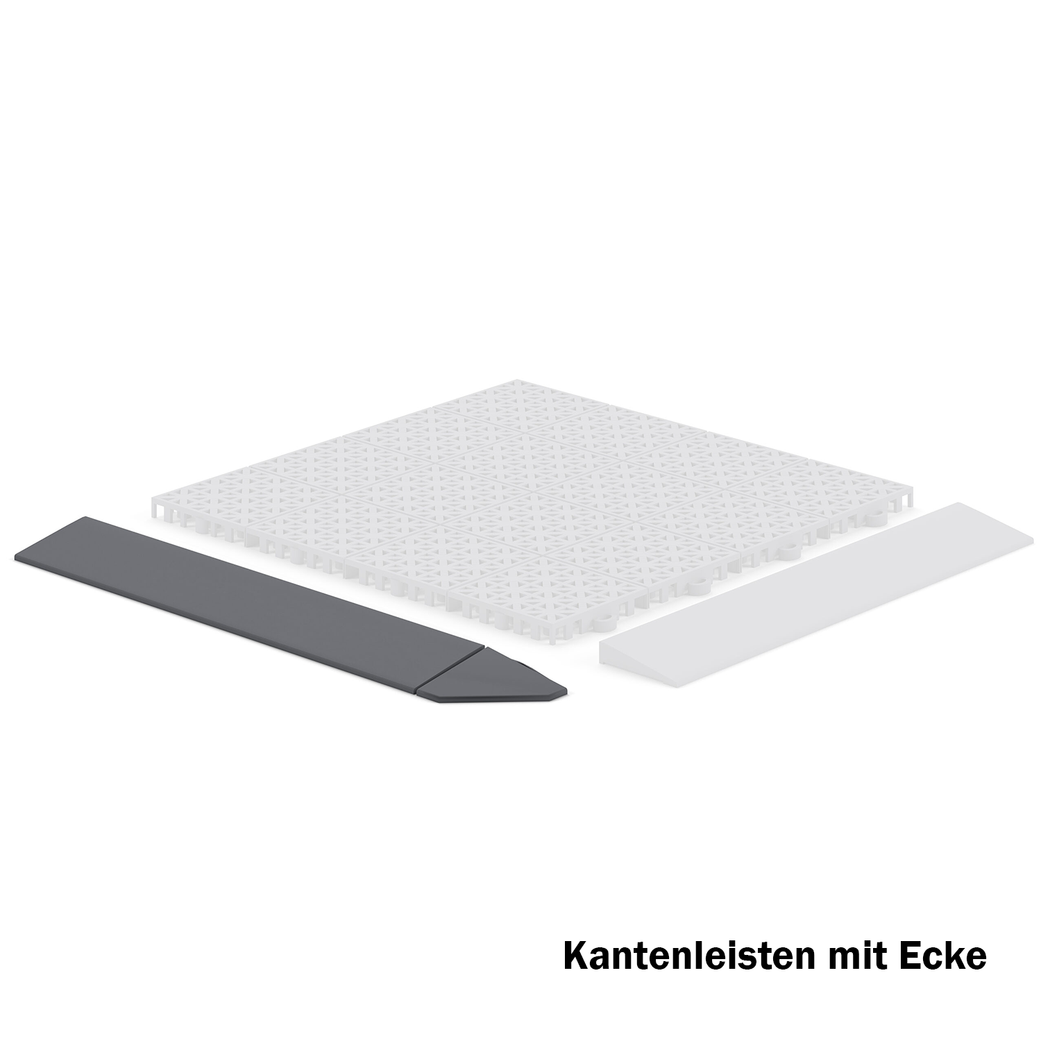 Hochqualitatives Bodenstecksystem aus Kunststoffplatten – für Balkon, Terrasse, Schwimmbäder, Sauna, Wintergärten, (Wasch)Küchen, Lagerräume, Keller oder Garagen, in der Werkstatt, für Showrooms, Messestände usw… Optimal für den ganzjährigen Einsatz in Innen- und Außenbereichen! Aus 100% recycelbarem Polypropylen – produziert in Schweden.