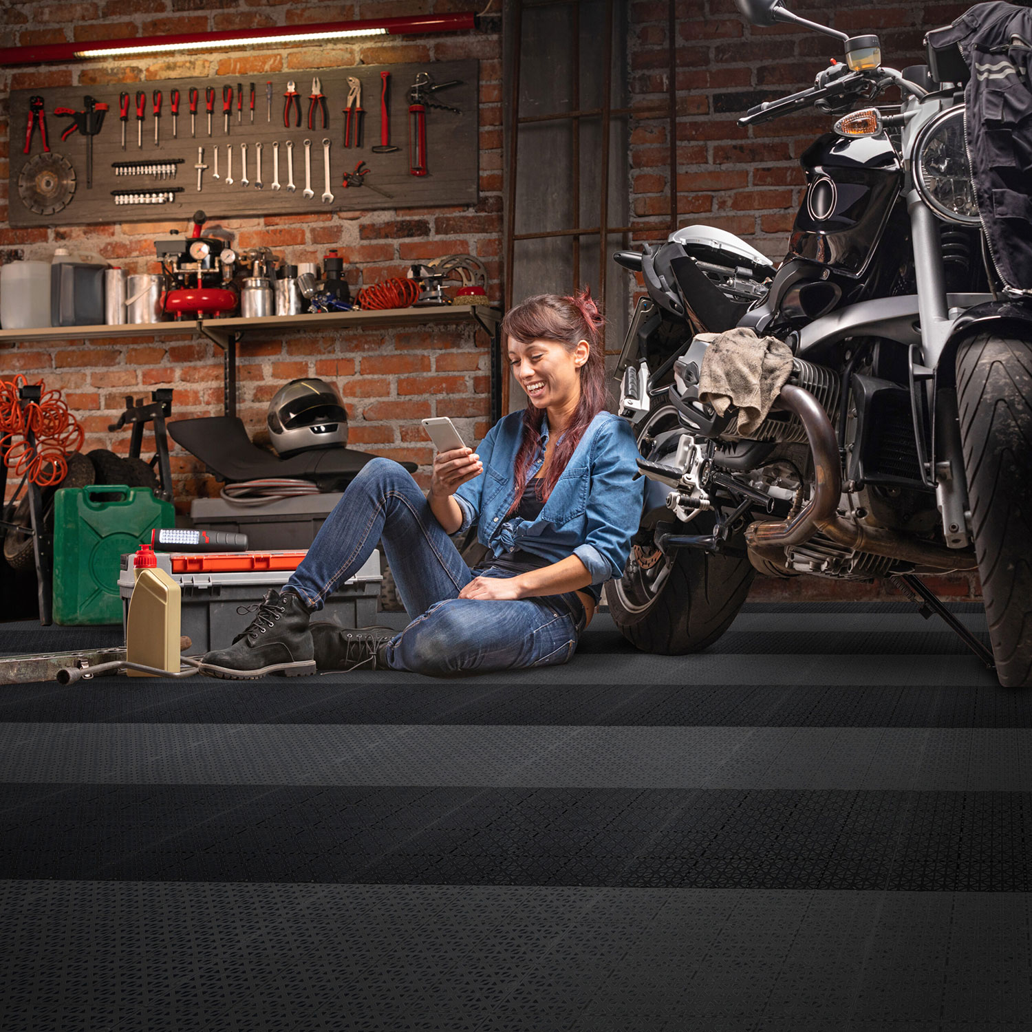 - Bei der Verlegung in der Garage empfehlen wir, die äußerste Reihe der Platten festzuschrauben, um Verrutschen zu verhindern.