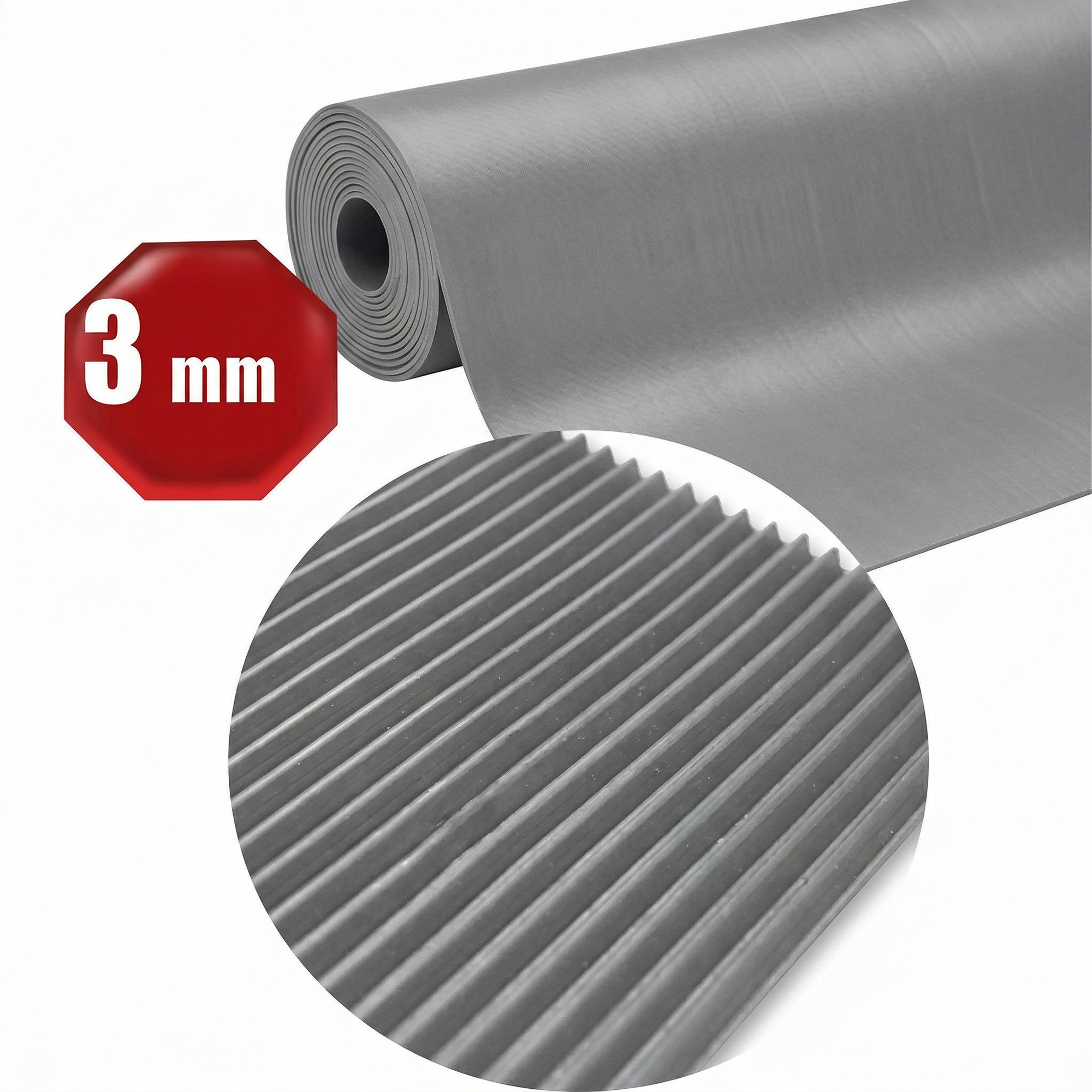 Feinriefenmatte Rib ‘n’ Roll grau, 1 m breit, 3 mm dicke Gummimatte als Meterware